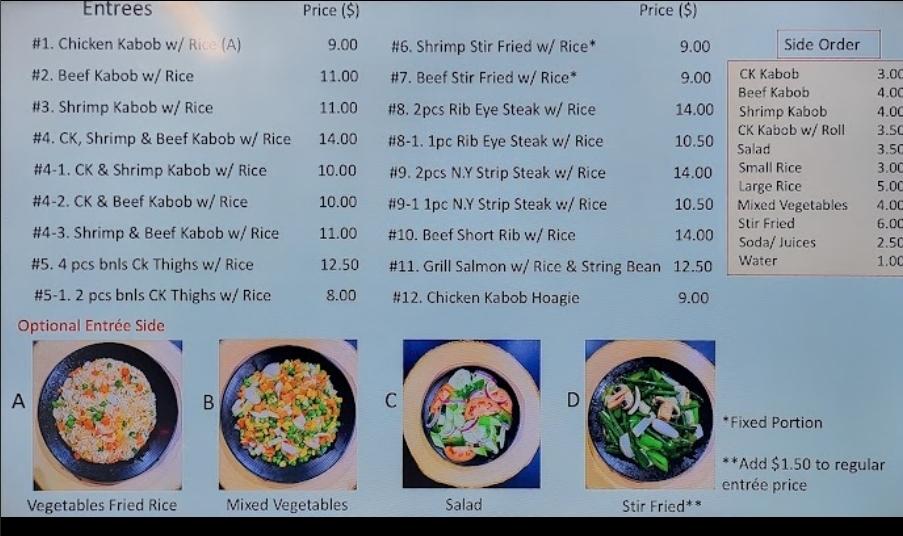 Sides like mixed vegetables and rice complement the main dishes perfectly. The option for a la carte allows for customization, ensuring everyone can find something they love. With nearly fifty items available, there is no shortage of choice, making each visit exciting.